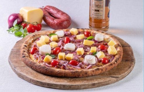 É uma homenagem às tradições italianas, valorizando a culinária local deixada pelos antepassados através de uma harmoniosa combinação de sabores. A pizza tem uma base deliciosa com massa saborizada por temperos frescos e borda recheada com creme de palmito. É coberta com molho de tomate artesanal, queijo muçarela derretido e uma seleção cuidadosa de ingredientes: linguiça Blumenau, palmito local, tomate cereja, queijo colonial e cebola roxa flambada na cachaça. Tudo direto do campo, onde os colonos fizeram história. R$ 65,00 para duas pessoas.
