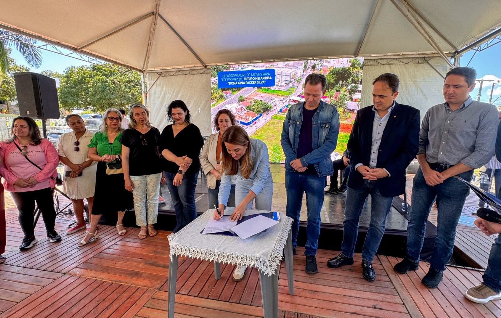 No ato, foram entregues aos representantes da Câmara de Vereadores os Projetos de Lei que solicitam a autorização para o governo efetuar seis desapropriações necessárias para a reconstrução do novo núcleo, que passa a se chamar NEI Ariribá – Dona Gina Packer Silva. No total, o NEI ficará em uma área de mais de 2,2 mil m². A prefeita também assinou, simbolicamente, a sanção da Lei n° 5.109, que autoriza a destinação de R$ 5 milhões para a reconstrução.