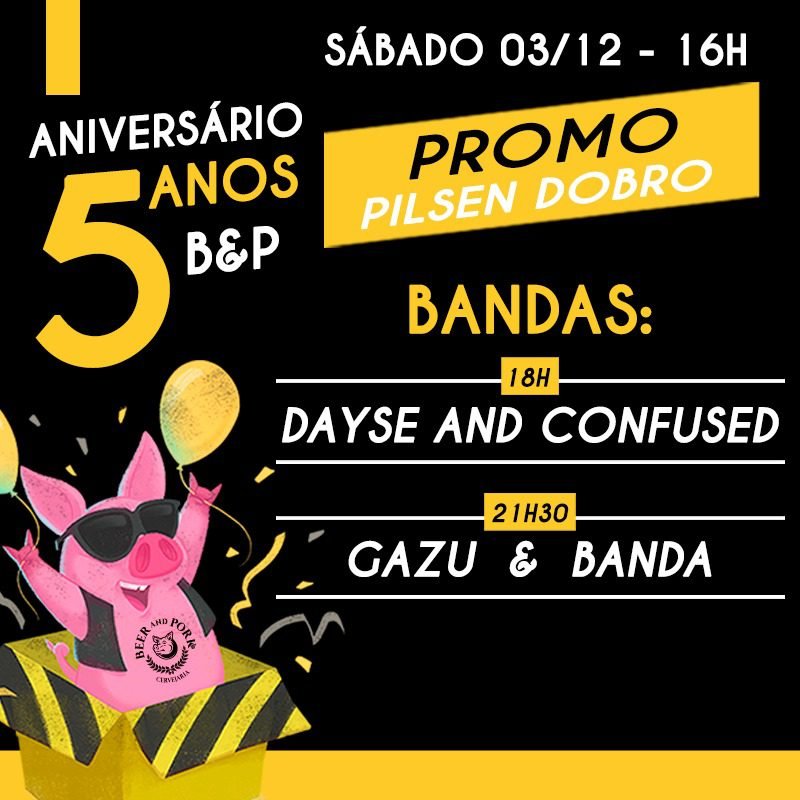 Outra atração confirmada para este sábado é a banda de rock Dayse and Confused, que traz no repertório sucessos da música nacional e internacional como Janis Joplin, Beatles, The Cranberries, Stones, Led Zepelin, Rita Lee, Bob Dylan, Legião Urbana e Alanis Morissette. E exclusivamente neste sábado, durante toda a festa, cerveja Pilsen em dobro: pediu uma, ganha outra de presente da casa.