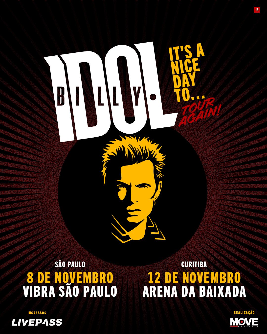 O ícone do rock Billy Idol traz a turnê It’s a Nice Day To…Tour Again! ao Brasil no mês de novembro. Billy Idol se apresentará na Vibra São Paulo, em São Paulo, no dia 8 de novembro de 2025, e na Arena da Baixada, em Curitiba, no dia 12 de novembro de 2025. Estes serão os primeiros shows de Idol no Brasil desde 2022.