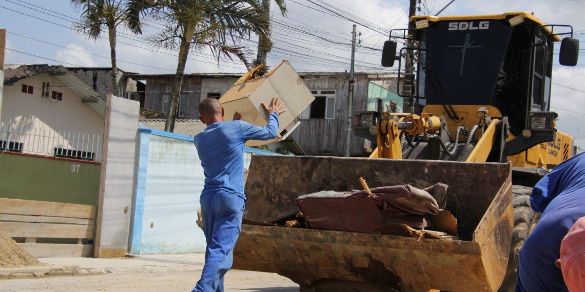 Os trabalhos incluem a limpeza e recuperação de vias, bem como o recolhimento de móveis e entulhos afetados pelas inundações. A população pode deixar os itens para descarte em suas calçadas para que as equipes realizem a devida coleta.