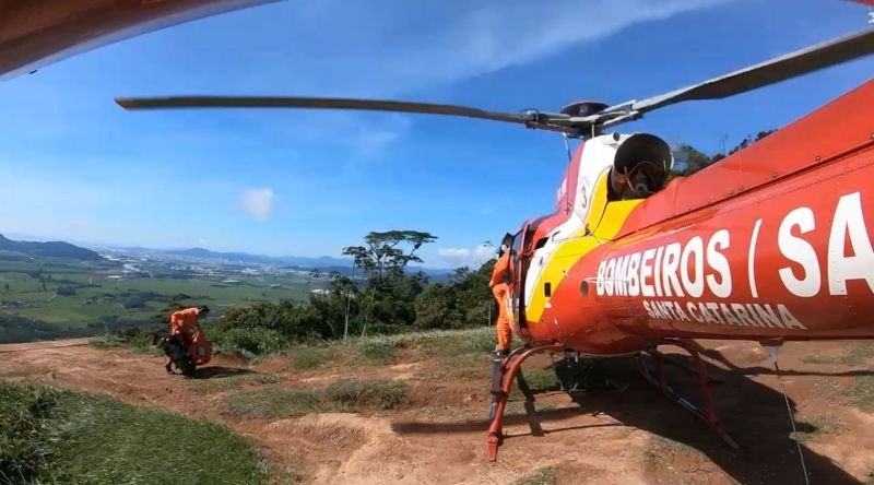 Motociclista é resgatado por helicóptero após acidente em trilha de Navegantes