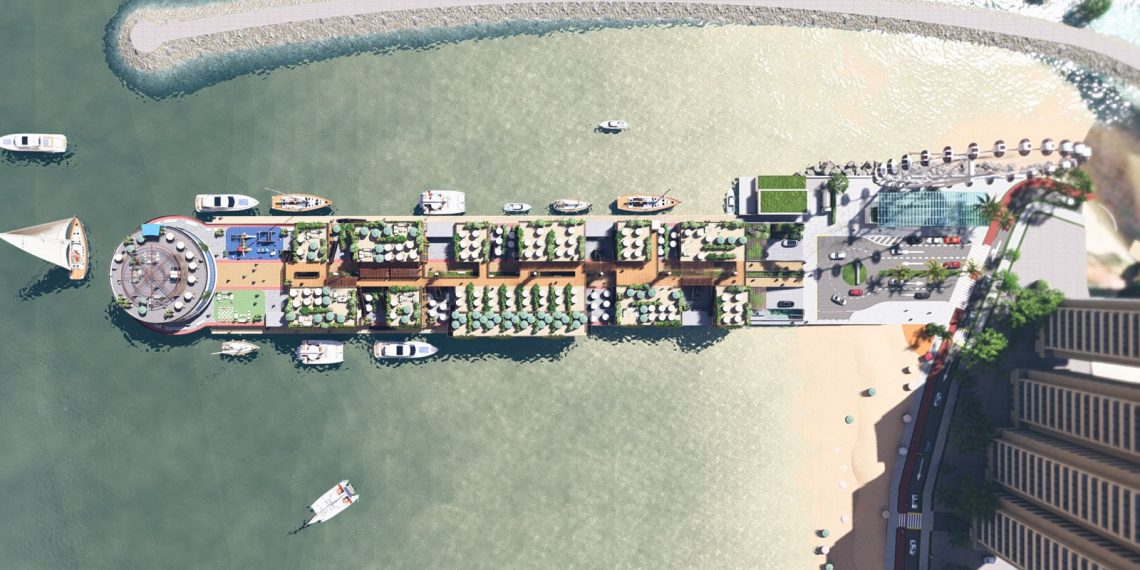 O píer, com área total de 18.274,29 m², será o único na América Latina com estacionamento abaixo da plataforma principal. O local terá 226 vagas para veículos, além de capacidade para 50 vagas molhadas, e uma área comercial de 9.458,00 m², incluindo 28 lojas, oito quiosques e dois espaços multiuso. O novo grupo societário, que atua em segmentos distintos, fez melhorias no projeto original buscando um viés mais turístico e dinâmico. Entre as novidades está um rooftop para a realização de eventos no topo do prédio, de camarote para as belezas naturais de Itapema.