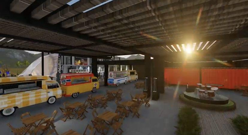 O Food Park é um dos equipamentos do novo espaço de lazer que deve se tornar ponto de encontro de moradores e turistas. No local estão previstos também academia, playground, espaço pet, chimarródromo, espelho d´água, chafariz seco, letreiro instagramável, solário e heliponto. A área terá ainda infraestrutura como salas para a utilização dos corretores de imóveis e demais profissionais do setor, além de estacionamento e palco para apresentações.
