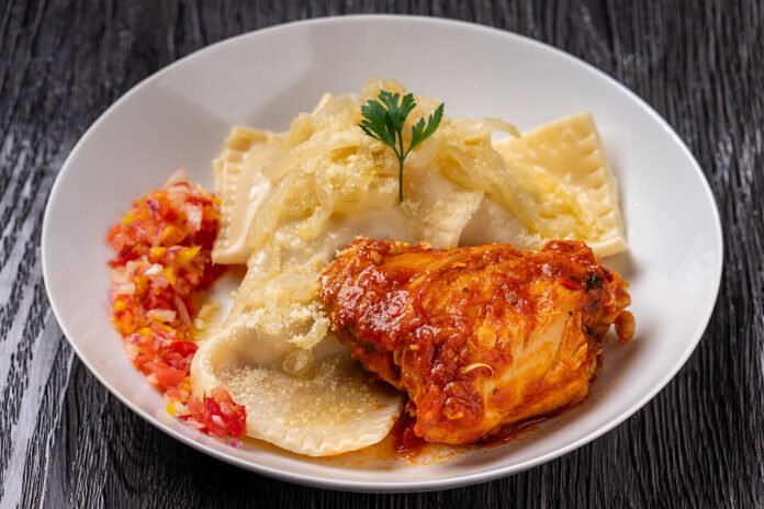 Massa artesanal recheada com batata e abóbora temperada, servida com manteiga derretida, cebola dourada e vinagrete caseiro.